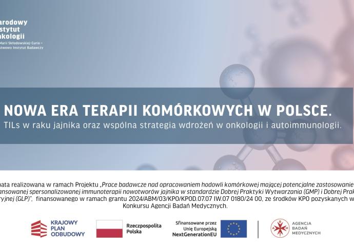 Spotkanie, które odbędzie się w Centrum Prasowym PAP (ul. Bracka 6/8, Warszawa), poświęcone jest projektowi realizowanemu przez Zakład Medycyny Regeneracyjnej Narodowego Instytutu Onkologii w ramach KPO, którego celem jest opracowanie hodowli komórkowej limfocytów naciekających guz (TILs) do zastosowania w zaawansowanej, spersonalizowanej immunoterapii raka jajnika.
